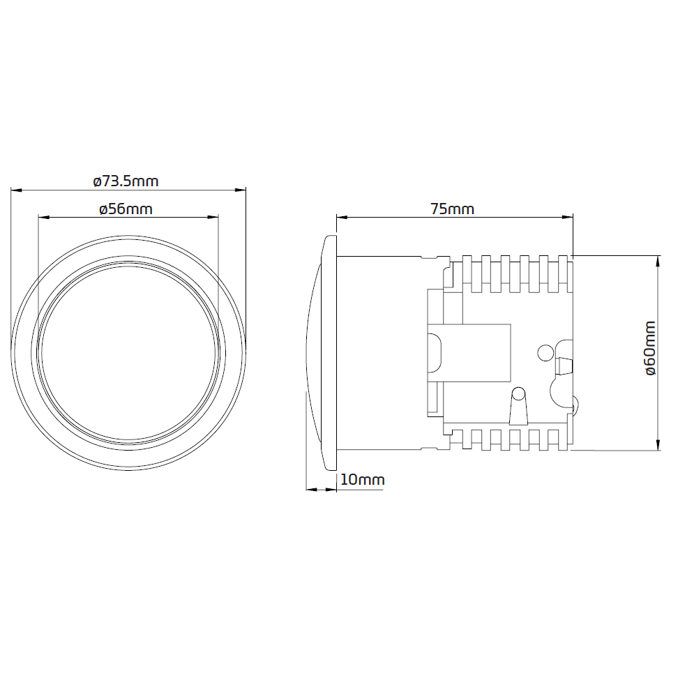 - 73.5mm diameter round push button